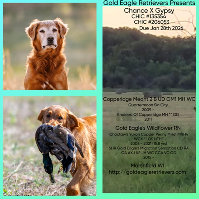 This is a unique pedigree with long life, exceptional health, and working ability. The pedigree is littered with a multitude of grandparents in their teens. Chance is structurally strong with moderate bone, a straight topline, and correct tail set. He is one of the most correct dogs that I've have laid my hands on in 25 years. His offspring are energetic and focused with a strong work ethic. Gypsy is well-balanced with correct angles on front and rear. She moves easy and looks good coming and going. Gypsy is an excellent marker and has a very good water attitude. $2500 ea. Whelped Jan 28th and able to go home Mar 17th.